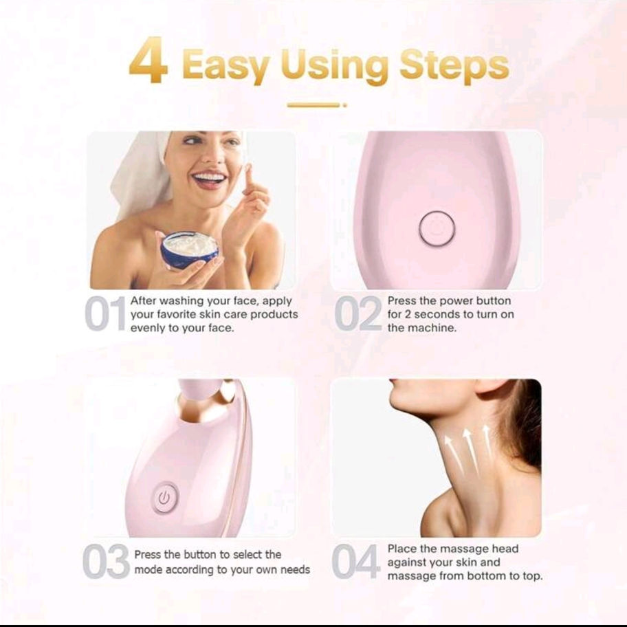 Dale a tu piel el cuidado que merece con el Masajeador Facial y de Cuello con Luz LED, diseñado para rejuvenecer y relajar mientras mejora la apariencia de tu rostro y cuello.